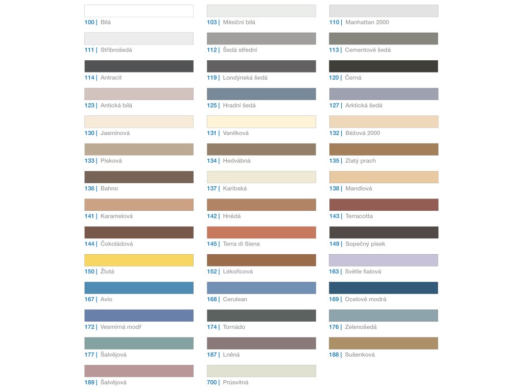 Barvy: Kerapoxy Easy Design je k dispozici v 41 barvách (40 barev a neutrální - č. 700 průsvitná).