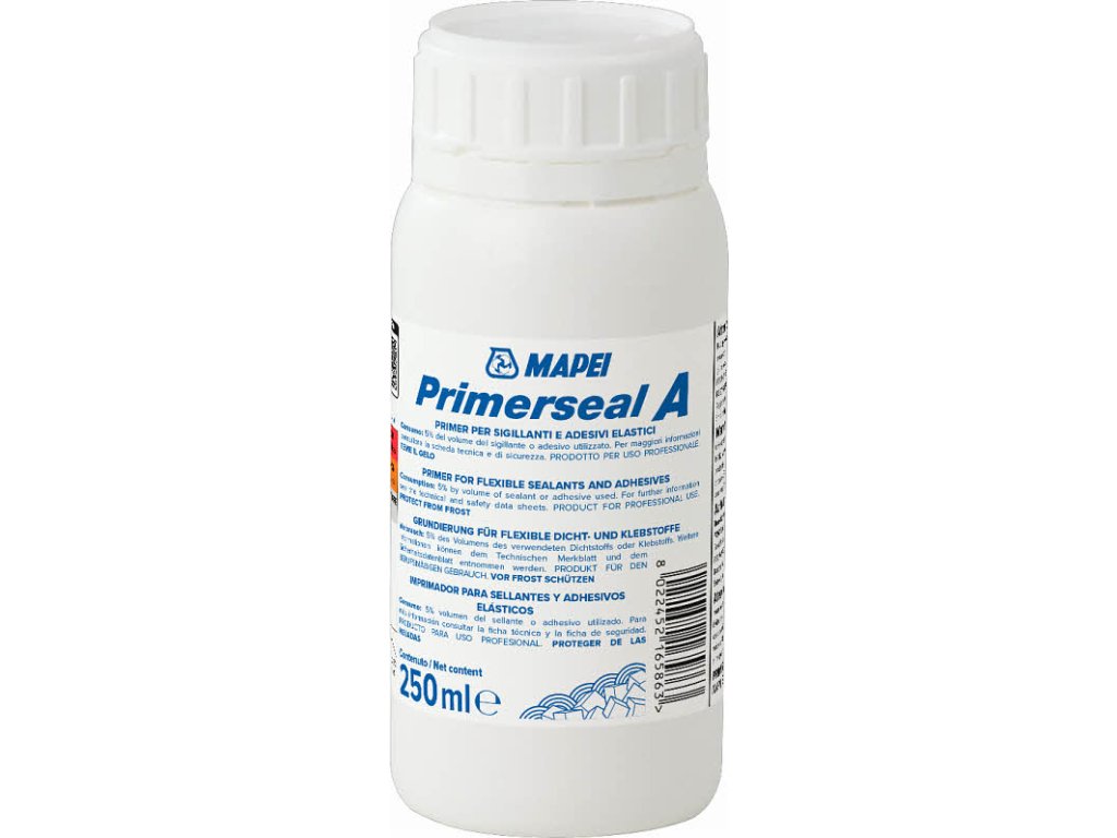 Primerseal A je specifický prostředek na podporu přilnavosti pro hybridní elastické tmely a lepidla Mapei (např. nebo řada Ultrabond MS), acetické silikony a neutrální silikony (např. řada Mapesil ) aplikované na všechny absorbenty substráty (suché nebo vlhké).