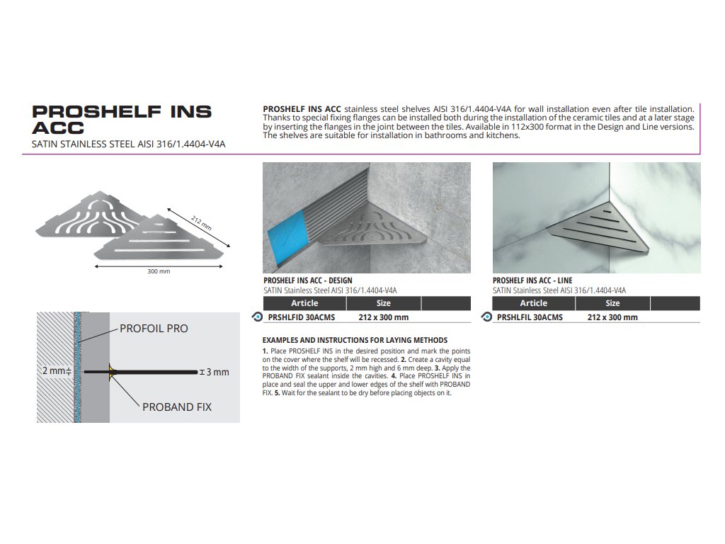 Progress Profiles ProShelf INS ACC nerezová sprchová polička 212 × 300 mm